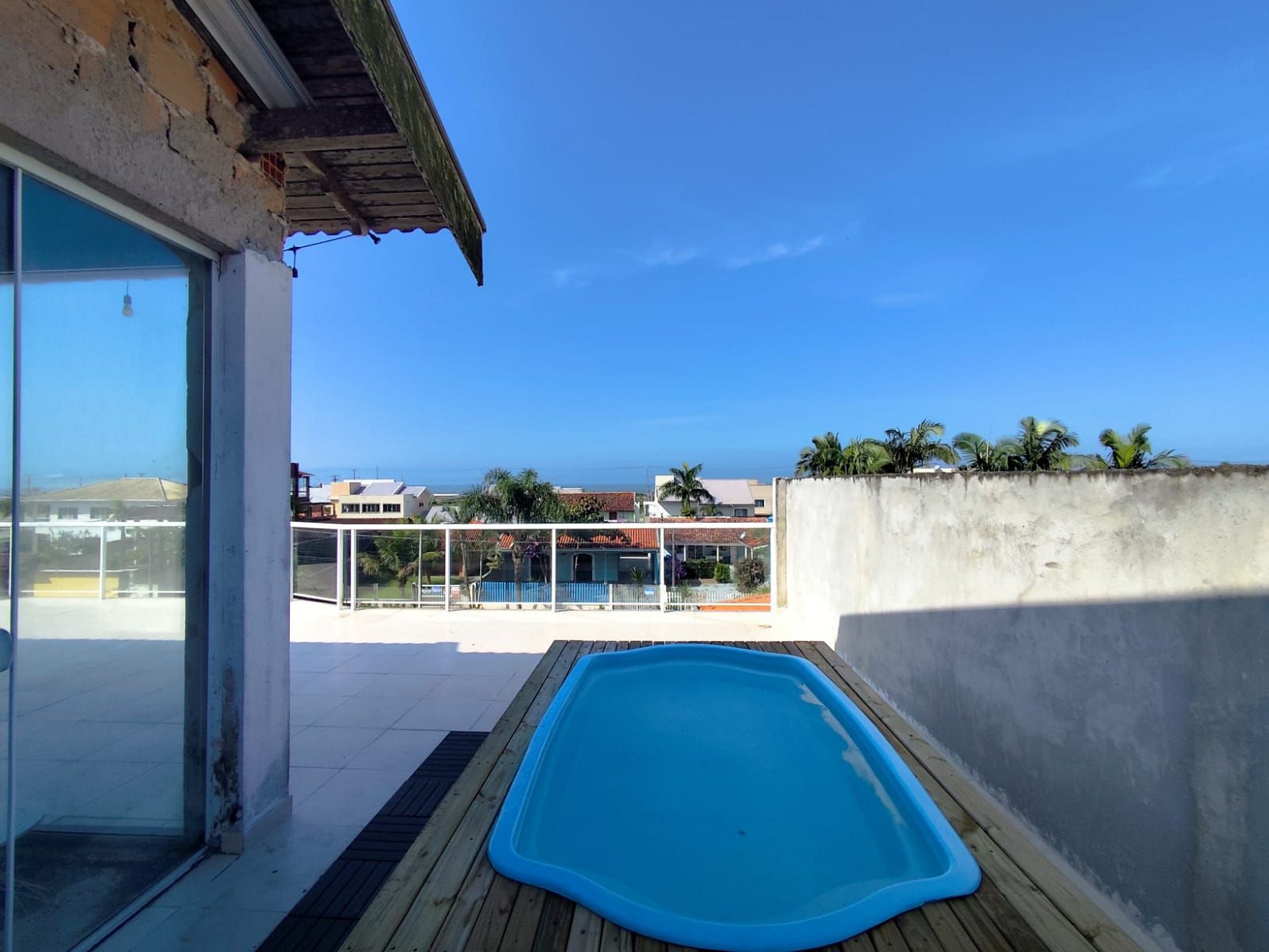 Piso 3 - Terraço Gourmet com churrasqueira, pequena piscina e vista para o mar.