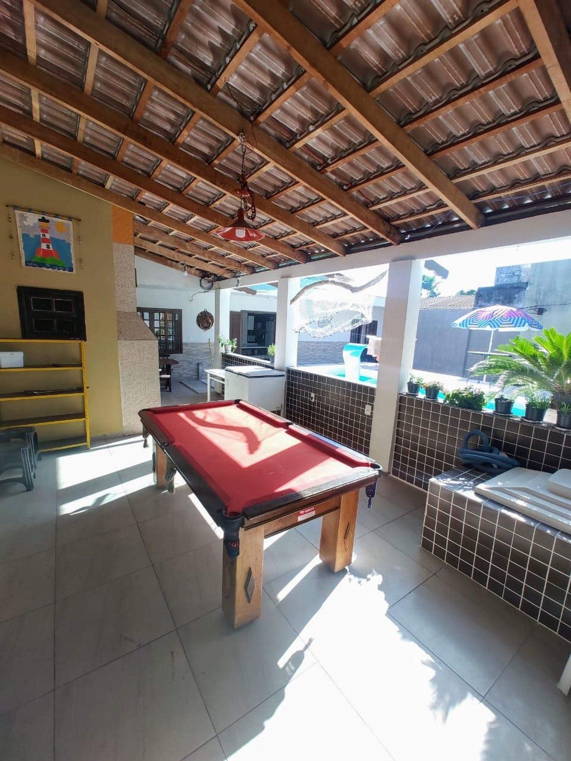 - Os anfitriões moram no imóvel á frente e estarão lá para tirar dúvidas ou ajudar em algo caso precise durante a estadia. - Piscina grande 6x3 com 1,40m profundidade e mesa de sinuca para diversão da família. A casa possui 3 quartos , um bem grande sendo suíte e todos os quartos possuem ar condicionado para uma noite bem relaxante.